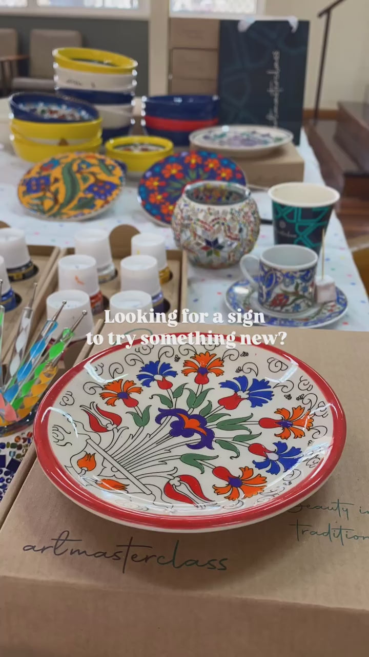 - All painting supplies provided – ceramic plates and bowls, paints, brushes...